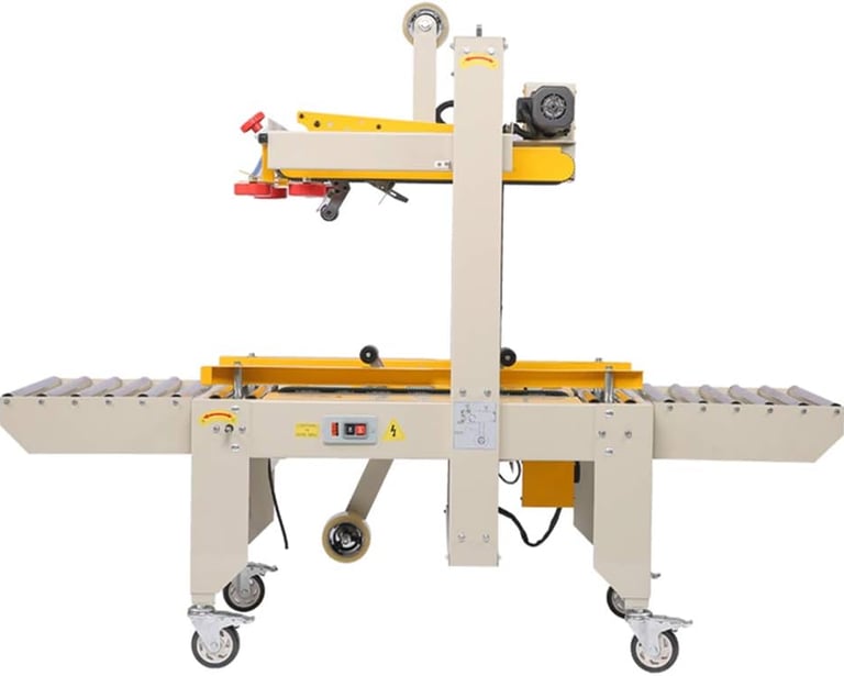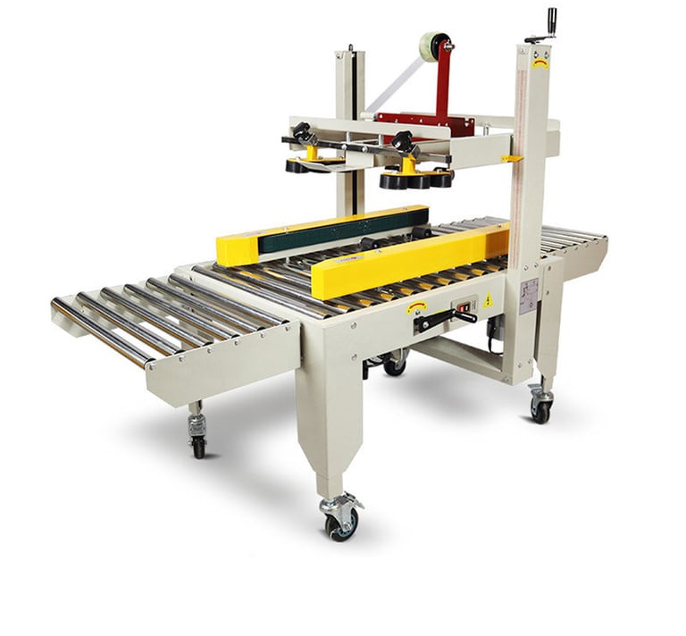 Conveyor belt tension and tape tension are adjustable to meet the needs of soft/hard cartons