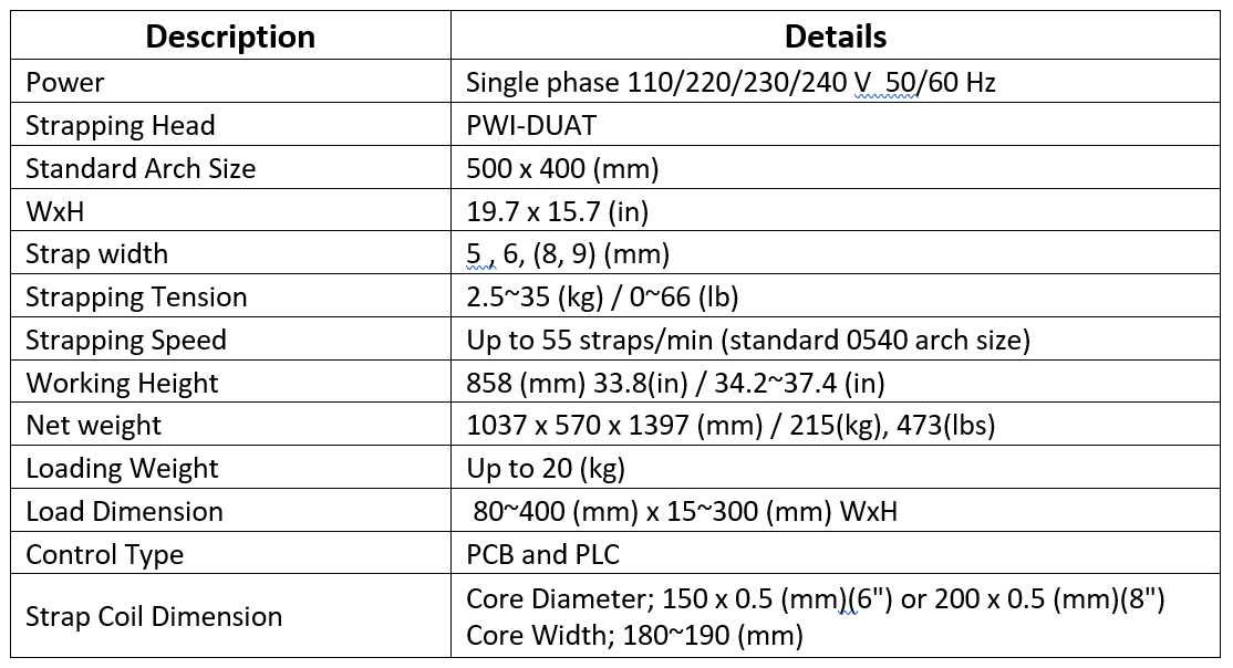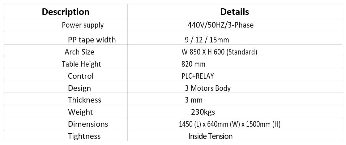 2.2. Fully Automatic Strapping Machine- Packway Model- PW-0860AS2R