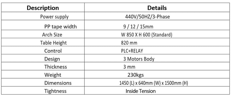 High-table automatic strapping machine adopt film, durable, efficient mechanism as main body, human-machine interface, PLC and fully digital manipulation to ensure easy size changeover and stable running.