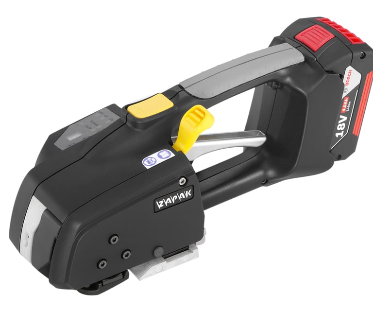 The ZP 93/97 is a smart, battery powered PP/PET strapping tool pre-programmed strapping tool that comes with a user-friendly digital touch interface panel. This strapping tool can be operated with one hand and is easy to operate. With brushless motor technology, the tool is perfect for strapping light or fragile objects. It has an all in one auto tensioning, sealing and cutting features.